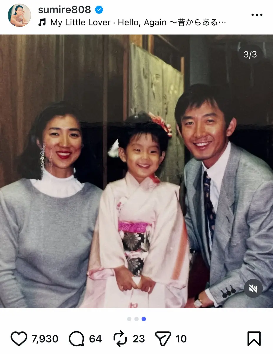 3枚目には、七五三記念と思われる自身と松原さん、父・石田純一との3ショットも披露した。