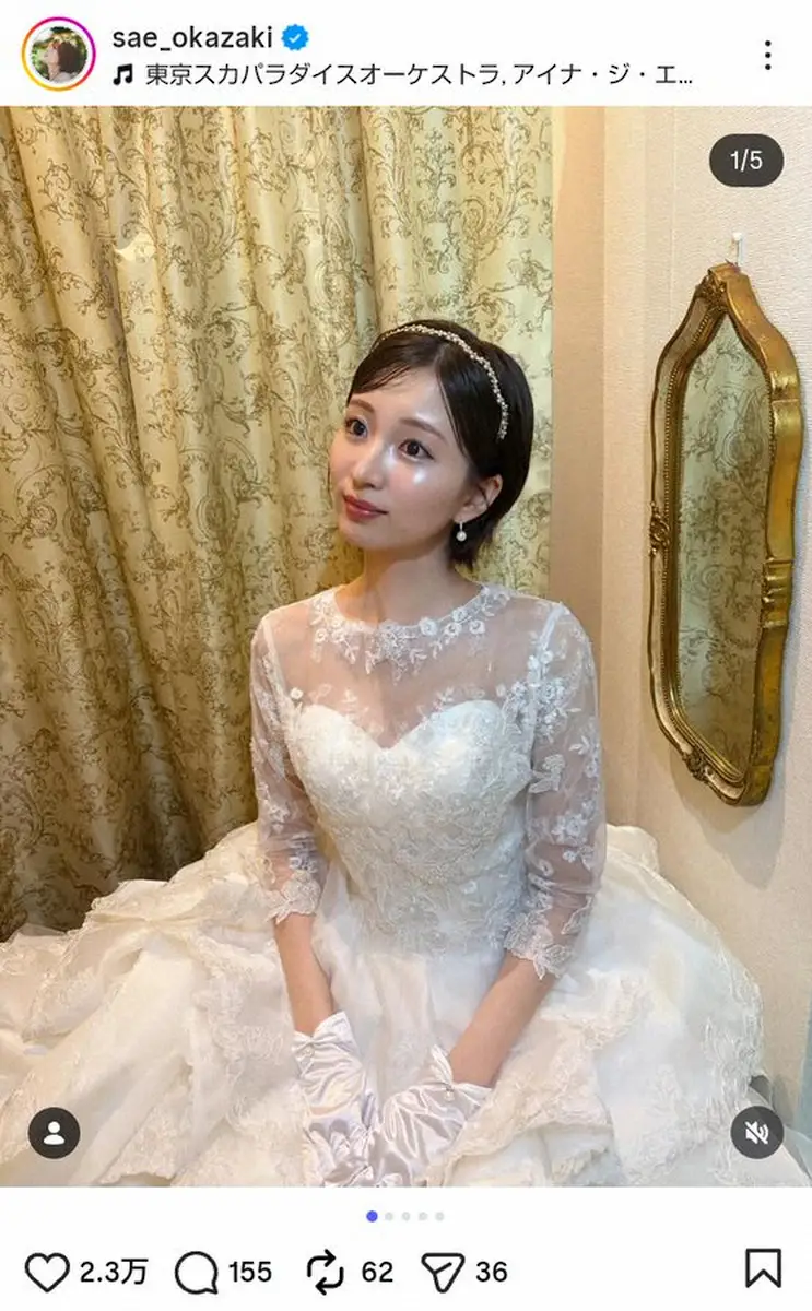 岡崎紗絵 美しすぎる“花嫁姿”にファンくぎ付け「美しくて素敵すぎる」「全てがナンバーワン」