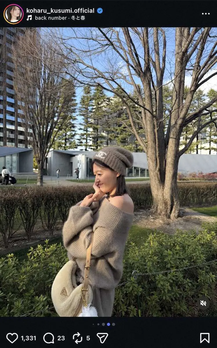 元モー娘。久住小春 オフショルミルクティーコーデSにネット反響!「超絶美しい」「可愛い」