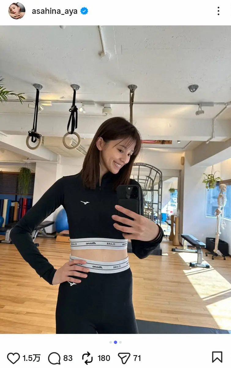 朝比奈彩 「気分が上がる」トレーニングウエア姿公開、ファン絶賛「カッコいい」「スタイル良すぎ」の声