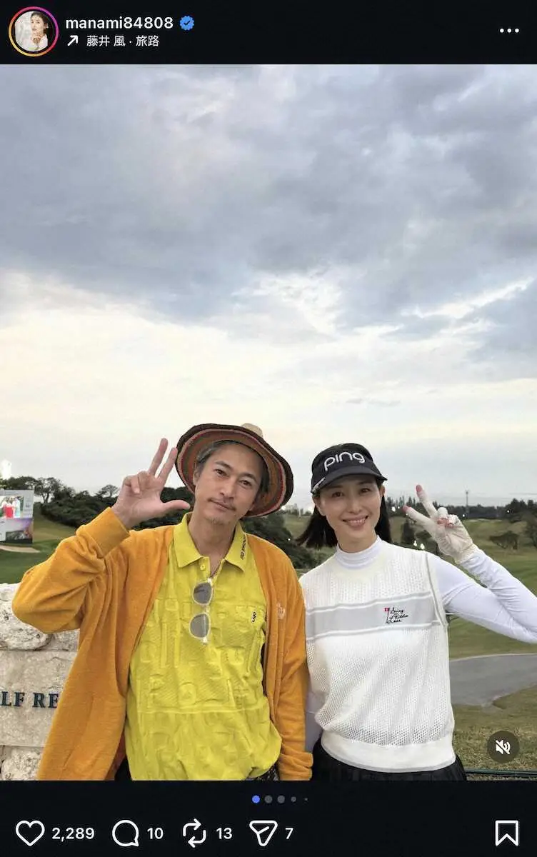 「あいにくの雨で全てまわれませんでしたが楽しかったなぁ」とチャリティゴルフ大会に参加した俳優・窪塚洋介との2ショットや女優・高島礼子、人気女子プロゴルファーの金田久美子との3ショットなどを投稿した。