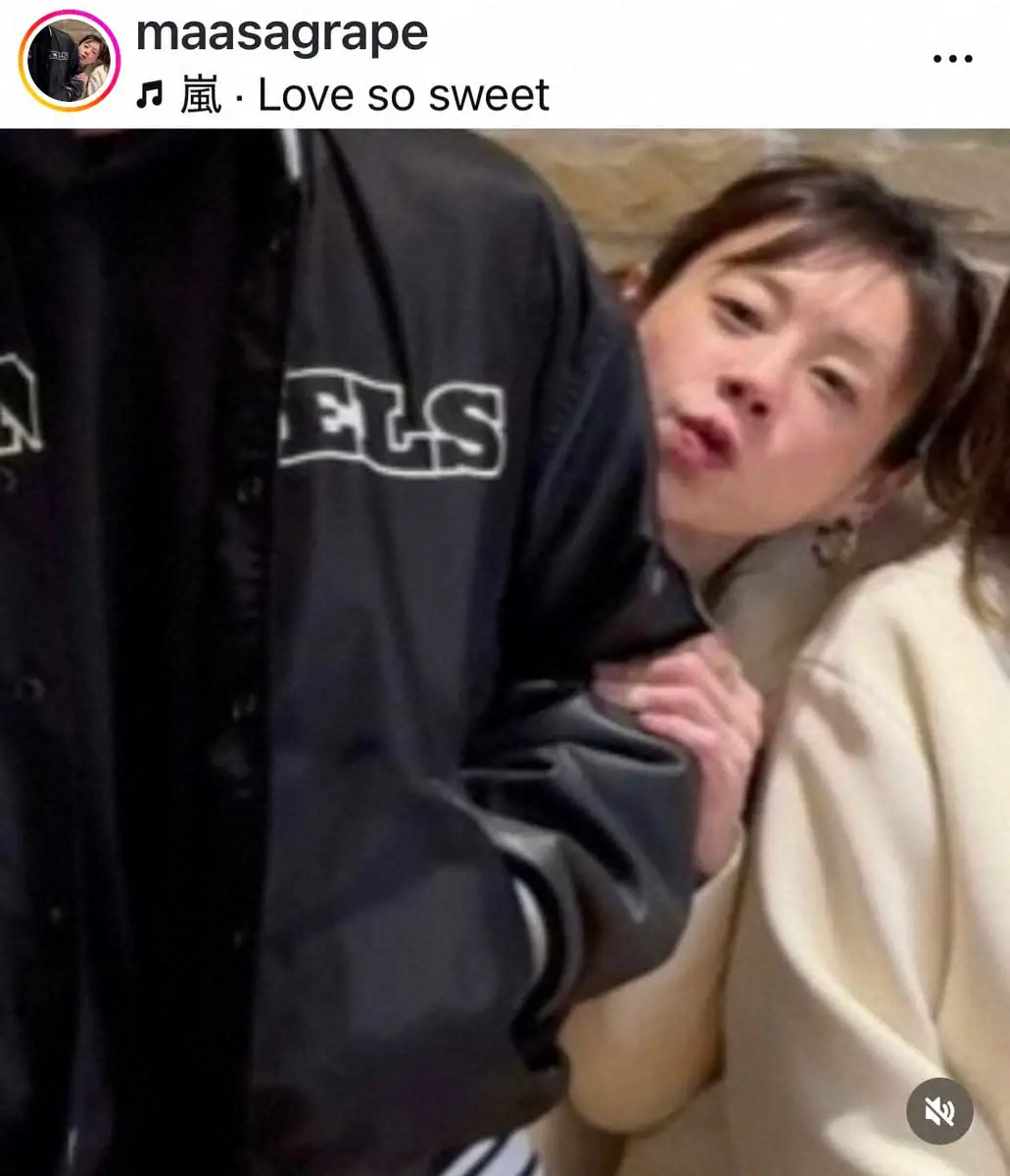 「アイコンを夫の後ろからひょっこり顔出し写真に変えました」とつづり、黒のスタジャンを着た夫の腕の横から、顔を覗かせているかわいらしい1枚。