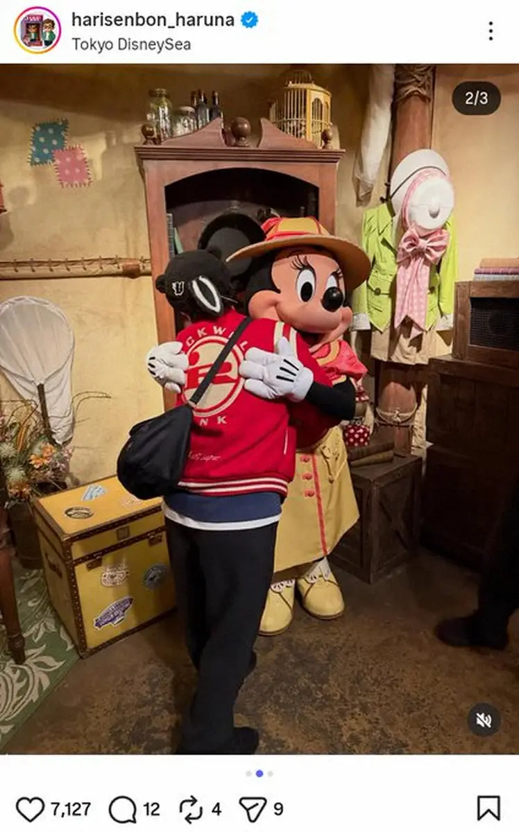 ファンからは「全然春菜ちゃんのお顔見えず」「背中から楽しさ伝わってきます」「とってもキュートです!」「春のディズニーっていいですね」などのコメントが寄せられた。