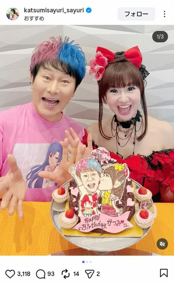 ファンからは「素敵なお二人お写真」「お二人ともお若い」「それにしても可愛いケーキですネ」「いつまでお幸せに」「まだまだ若い!かつみさん、ハチャメチャ元気に頑張ってくださいね」「末永くお元気で我々や隣に居てくれるさゆりちゃんに笑顔をお届け下さいね」などのコメントが寄せられた。