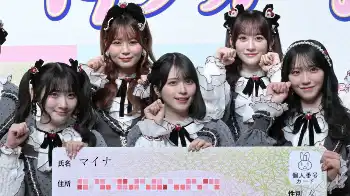 会場では、この日より放送される新テレビCMとCMオリジナルソング「まだまだマイナー?マイナカード」のPVをお披露目。グループとして初のCM出演を果たし、野口衣織は「グループでCM出演するのが夢だったのでうれしい。まさか初めてのCMが政府広報のCMっていう、ダブルでビッグな朗報に驚きました」と振り返った。