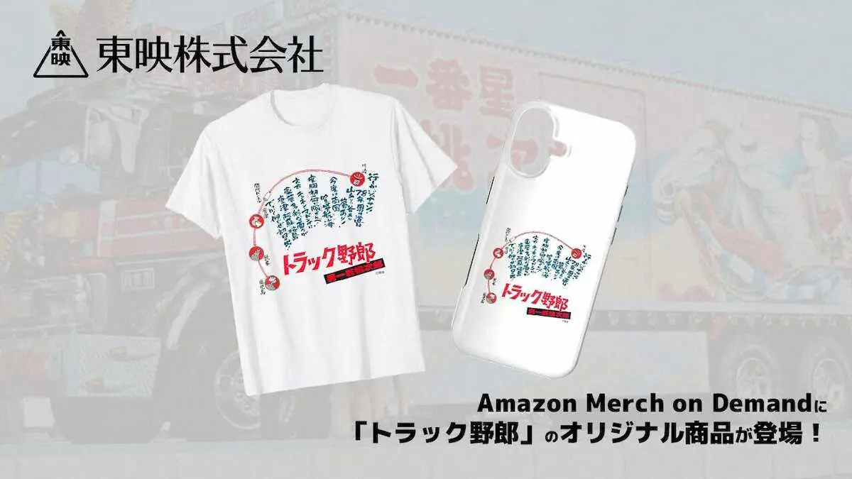 大手映画会社の東映が、Amazonが展開するオンデマンド・プリントサービス「Merch on Demand(マーチオンデマンド)」のラインアップに、菅原文太主演の映画「トラック野郎 男一匹桃次郎」(監督鈴木則文)をモチーフにデザインしたアパレル商品を追加し、3月2日から販売を開始した。