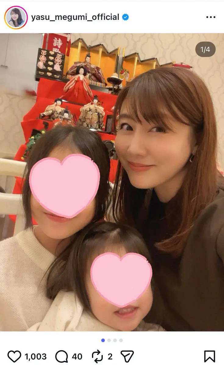 安めぐみの公式インスタグラム(@yasu_megumi_official)から 安めぐみ 「ひな祭り」母娘3S 2人娘の名前&豪華ひな人形も公開 ギャラリーで見る この記事のフォト 2026年03月04日の画像一覧 もっと見る 2026年03月04日の画像をもっと見る