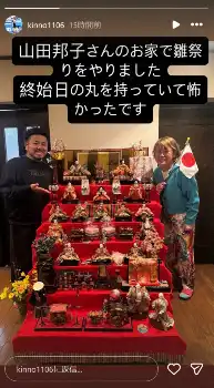 金ちゃんは、立派な7段飾りのひな人形の横に立つ自身と山田邦子の2ショットを投稿。