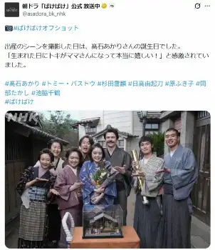 番組公式SNSはオフショットを掲載。「“生まれた日にトキがママさんになって本当に嬉しい!”と感激されていました」と髙石のコメントを紹介した。