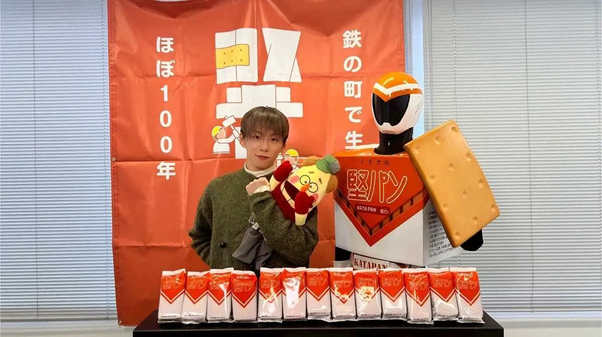 基が対面したのは、大正時代に官営八幡製鉄所の従業員の栄養補給として誕生した歴史的なお菓子「くろがね堅パン」。その名の通り、鉄のような硬さを誇る銘菓に対し、基は「硬っ。めちゃくちゃ硬いですよ。(前歯では)無理かも」とタジタジ。必死に奥歯で噛みしめると「美味しい。めちゃくちゃ甘い。甘さも上品」とその魅力をしっかりと伝えた。