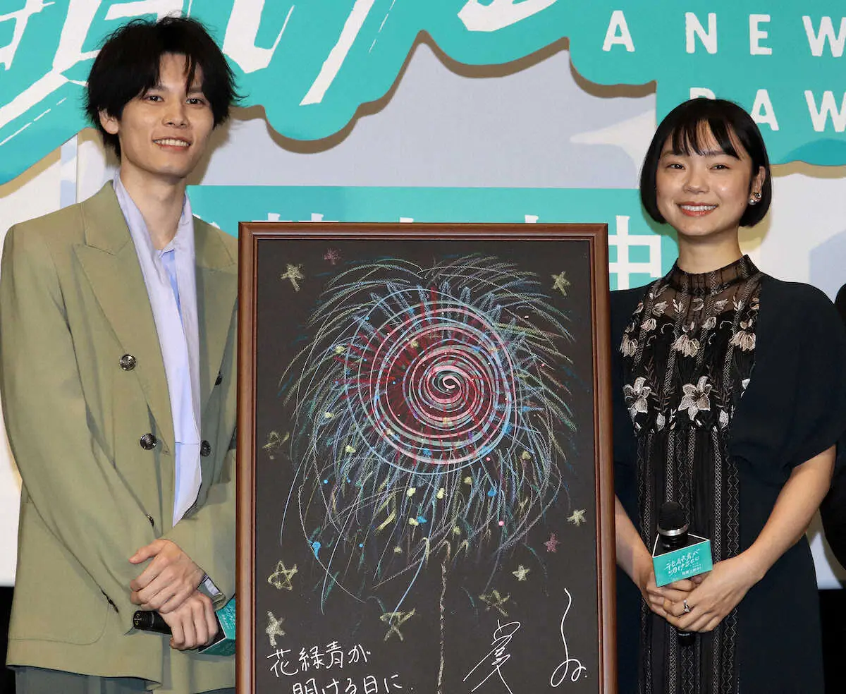 俳優の萩原利久(27)と女優の古川琴音(29)が7日、都内で声優を務めたアニメ映画「花緑青が明ける日に」(監督四宮義俊)の公開記念舞台あいさつに出席した。