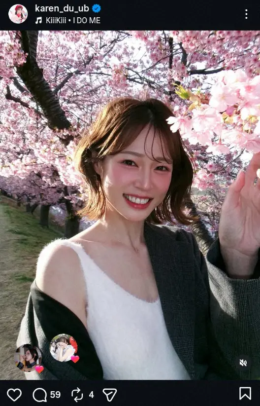 “4冠レースクイーン”橘香恋 お花見ショットで今季スーパーGTチーム報告に「花に負けない美しさ」