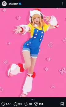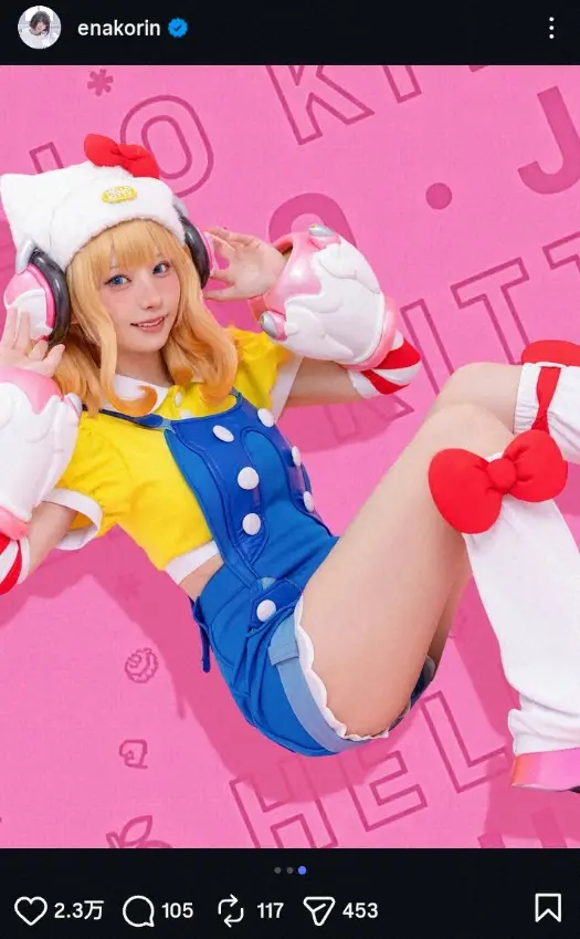 人気コスプレイヤーえなこが9日までに自身のインスタグラムを更新。「ハローキティ」と「ジュノ」の“コラボ・コスプレ”を披露した。