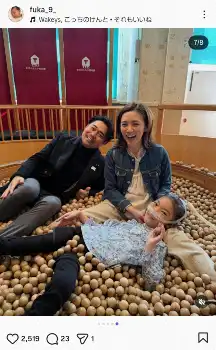 また「おもちゃ博物館のシンボル的な木のボールプールには家族みんなで入りました パパたっかは痛い痛いと顔をしかめていましたが、ママまりは全然平気 まだまだ元気な40代です」などと笑顔の3ショットも投稿した。