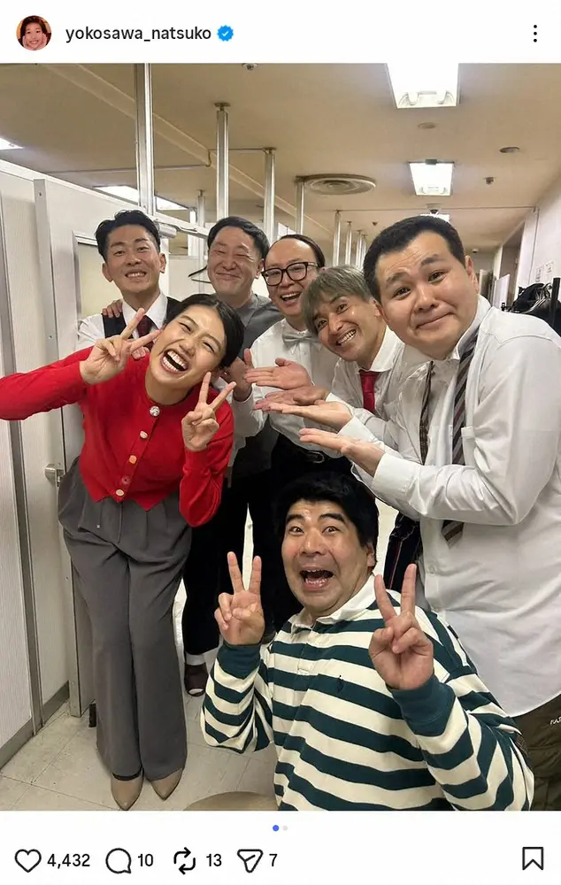 横澤は「昨日のルミネtheよしもとの出番で」と、人気芸人に囲まれた写真をアップ。「修学旅行のお客さんがいたんだけど 引率の先生で弟が来てたのよー!」と打ち明けた。