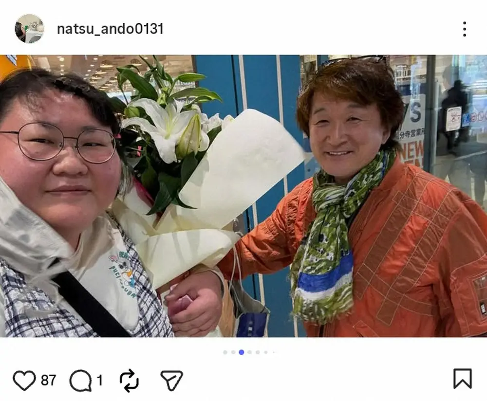 また1月31日に45歳となった安藤は「お誕生日お祝いしてくださったり」と、花束を抱える写真をアップ。これまでにも人気格闘漫画「グラップラー刃牙」などで知られる漫画家・板垣恵介との交流を明かしており、今年もお祝いしてもらったことを明かした。
