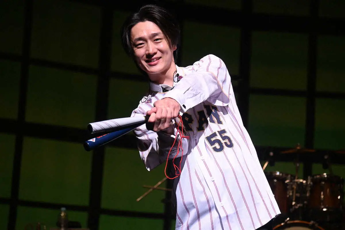 開演前の取材では、応援している侍ジャパン・村上宗隆内野手(26=ホワイトソックス)のユニホームを着て登場。WBCの試合も一人で熱心にネット配信で観戦しているという。自身も新曲発売にあたり「歌手として、歌でヒットを飛ばして、誰もがサビだけでも口ずさめるようなホームランを飛ばしたいと思います」と奮い立った。