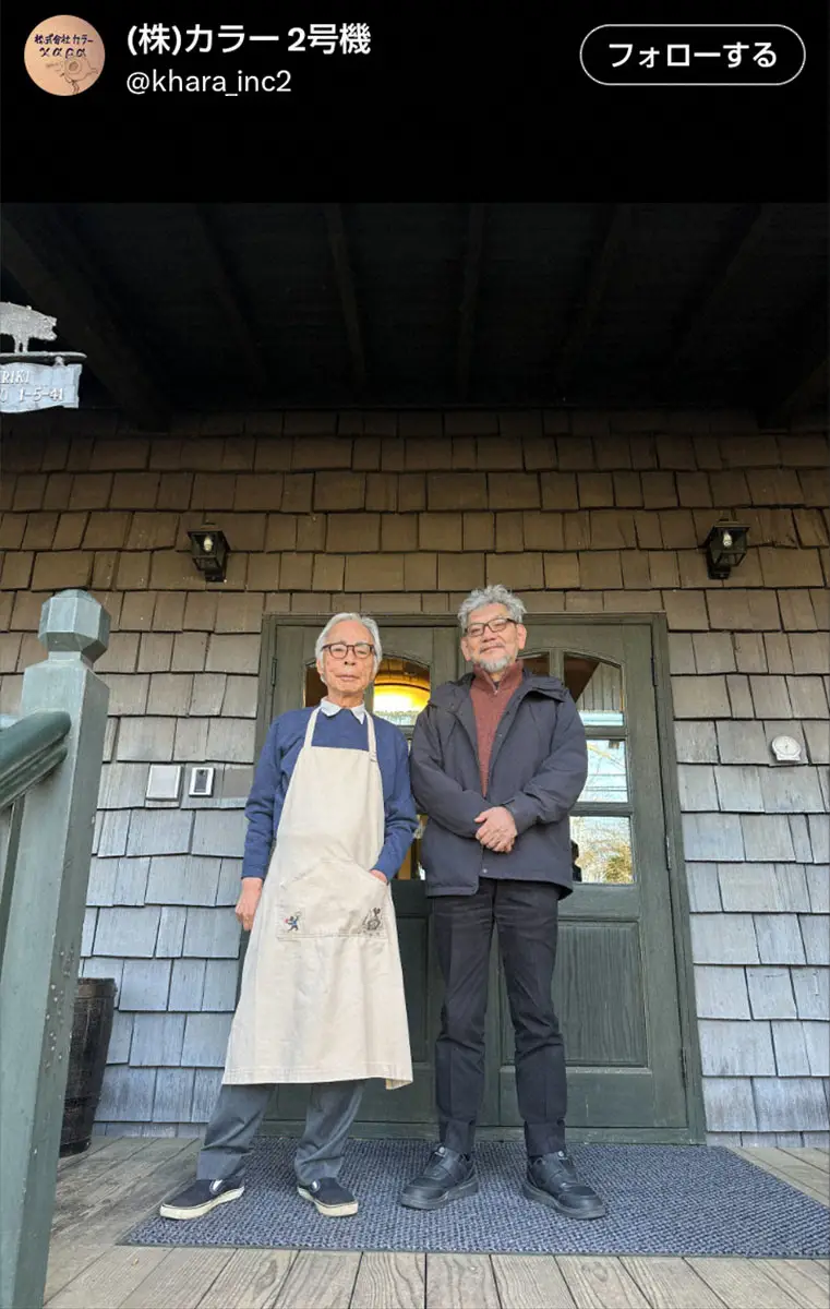 映画監督の庵野秀明監督(65)が代表取締役社長を務める映像制作などを手がける「株式会社カラー」の公式X(旧ツイッター)、「(株)カラー 2号機」が13日に更新され、庵野監督と宮崎駿監督(85)の2ショットを披露した。