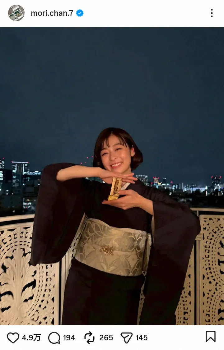 森は昨年、「国宝」のほかに「ファーストキス 1ST KISS」「秒速5センチメートル」にも出演しており、ストーリーズでは授賞式での集合ショットも紹介した。