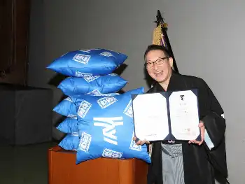 66歳での大学卒業は東海大学の歴史の中でも異例。「記憶力はマイナスに近いが、理解力が若い頃より確実に上がっている。大学の勉強は年を取った方が面白いし、頭に入る」と学び直しを考えている人に金言も送った。「東海大学には再入学制度があります!志半ばで卒業できなかった皆さん。ぜひ再入学制度を利用してまた東海大学で勉強してください。他の大学の方もそれぞれの大学で勉強されたらいかがでしょうか」と、母校のアピールも忘れなかった