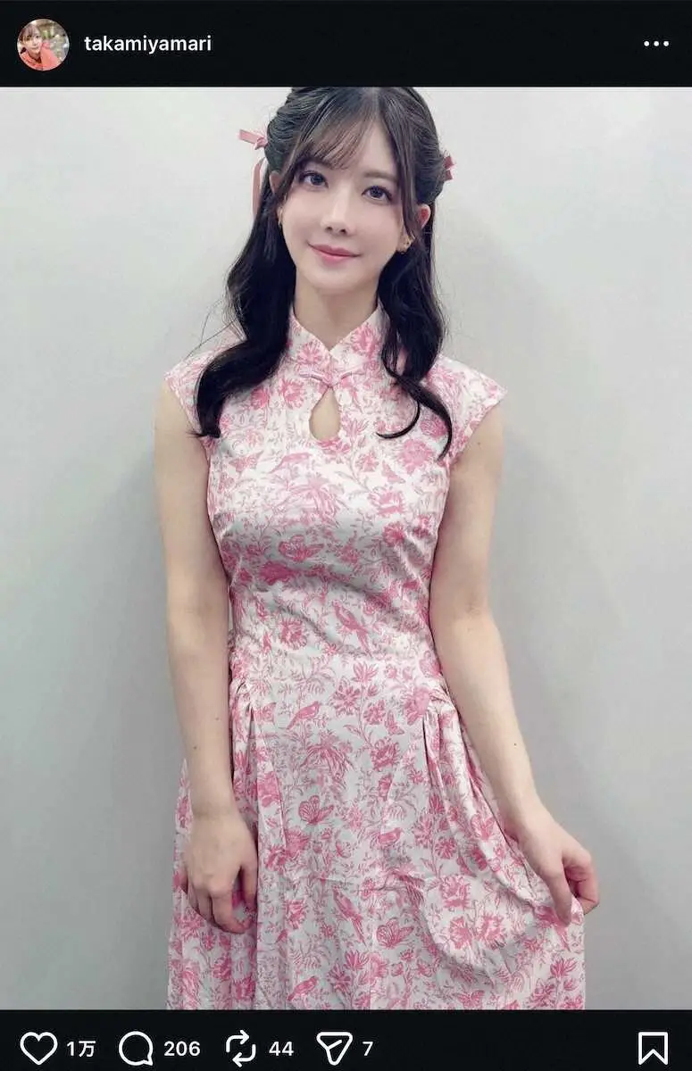 プロリーグ「Mリーグ」KONAMI麻雀格闘倶楽部に所属する人気女流プロ雀士・高宮まり(37)が3日までに自身のインスタグラムを更新。花柄ワンピースショットを投稿した。