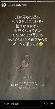 続く投稿では「すぐさま治療法などを送ってくれたり みんな優しすぎる!」と感謝のメッセージ。そして「床に落ちた湿布」の画像も披露し「もう2日ここにいる 拾えなさすぎて面白くなってきた ちなみにこの写真もかがめないから直立からズームで撮ってる」と大笑いの顔文字を投稿した。
