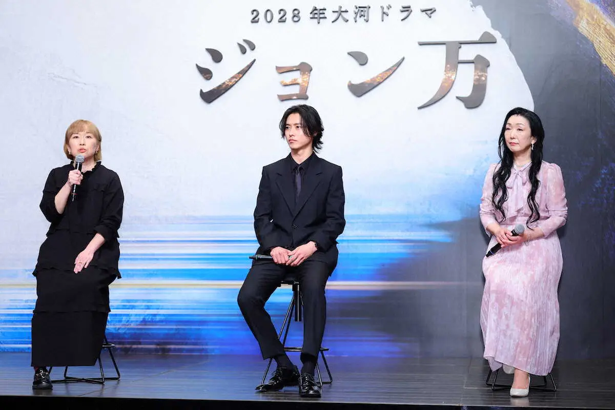 NHKは9日、東京・渋谷の同局で会見を行い、再来年2028年に放送する大河ドラマ(日曜後8・00)第67作が、漂流の末にアメリカ合衆国を訪れた最初の日本人の一人、ジョン万次郎を主人公とした「ジョン万」、主演は俳優の山崎賢人(31)、脚本は連続テレビ小説「カムカムエヴリバディ」などの藤本有紀氏に決定したと発表した。19世紀の日米と太平洋を舞台に“漂流者”となった庶民の一大感動巨編。山崎は大河初出演にして初主演に挑む。藤本氏は2012年「平清盛」以来16年ぶり2回目の大河脚本となる。
