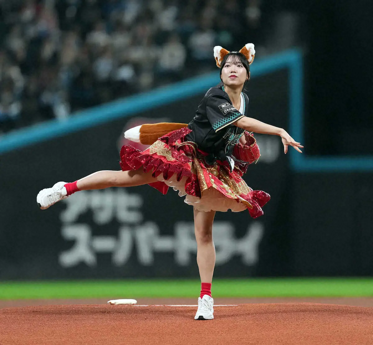 代表曲の「ぱぴぷぺPOP!」がTikTokの再生回数2億回を突破するなど、9人組アイドルグループ「Appare!」が11日、日本ハム―ソフトバンク戦(エスコンフィールド)に来場した。ゲスト来場した昨年9月14日の西武戦(同)に続き、グループを代表してファーストピッチを務めた朝比奈れいは「(捕手に)届かなかったけど、みんなにエールを届けたいという思いと同じように、真っすぐ投げられました」と、笑みを浮かべた。