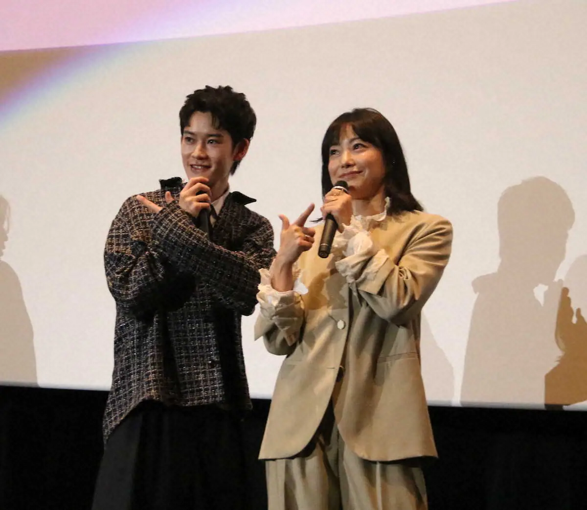 女優の菅野美穂(48)と山時聡真(20)が13日、都内でダブル主演を務める映画「90メートル」(監督中川駿)の公開舞台御礼あいさつに出席した。