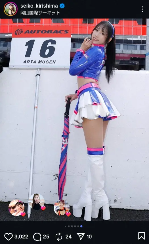 “レース界の聖子ちゃん”霧島聖子 開幕戦のミニスカコス姿披露に「めっちゃ可愛いー!」「美しい」