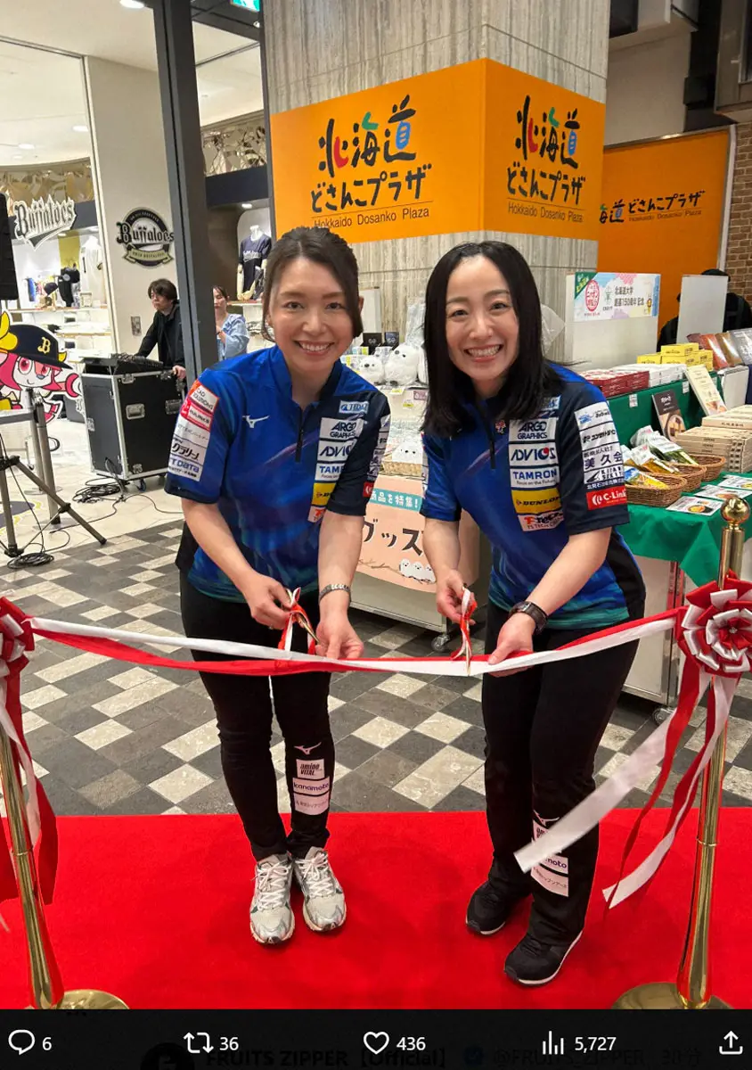 カーリング女子「ロコ・ソラーレ」などを運営する一般社団法人「ロコ・ソラーレ」代表理事の本橋麻里さん(39)が15日、自身のXを更新。「ロコ・ソラーレ」の藤沢五月(34)とのテープカット写真を披露した。