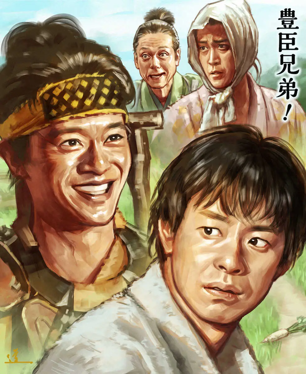 イラストレーターの石井道子氏が描いたNHK大河ドラマ「豊臣兄弟!」大河絵・第1話 弟はつらいよ…“草食系”の猿と“肉食系”の猿がゆく天下道