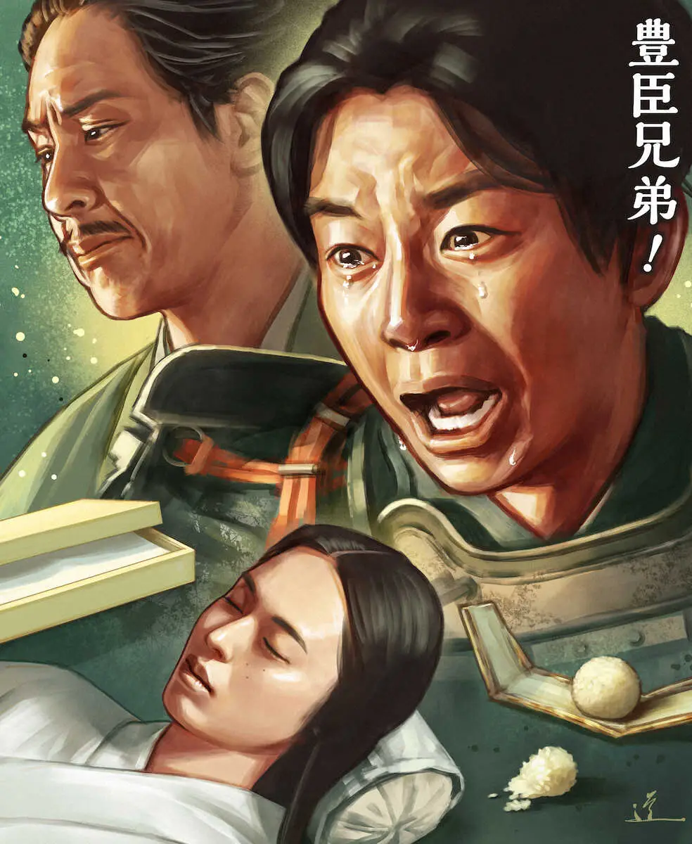 イラストレーターの石井道子氏が描いたNHK大河ドラマ「豊臣兄弟!」大河絵・第8話 直!直!起きてくれ!直!直!直…胸が張り裂けた小一郎の慟哭