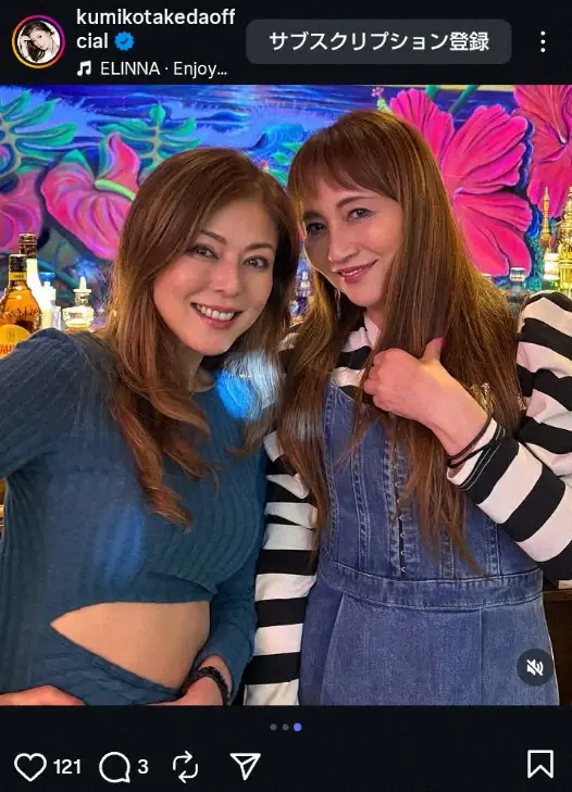 女優の武田久美子(57)が20日、自身のインスタグラムを更新。「顔が似ている」米米CLUBダンサーとの2ショットを公開した。