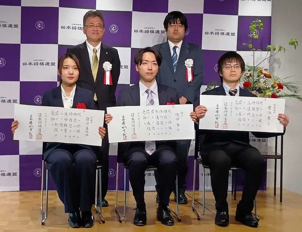将棋の令和8年度昇段者免状授与式が22日、大阪府高槻市の関西将棋会館であり、徳田拳士五段(28)らが出席した。デビュー初年度の2022年、若手棋戦の加古川青流戦でいきなり優勝した同志社大出身初の棋士は先月、公式戦100勝を達成。4年がかりでの昇段に「ふがいない成績が続いた。目の前の一極に集中して指し、それが何かの結果につながれば」と5年目以降の巻き返しを誓った。