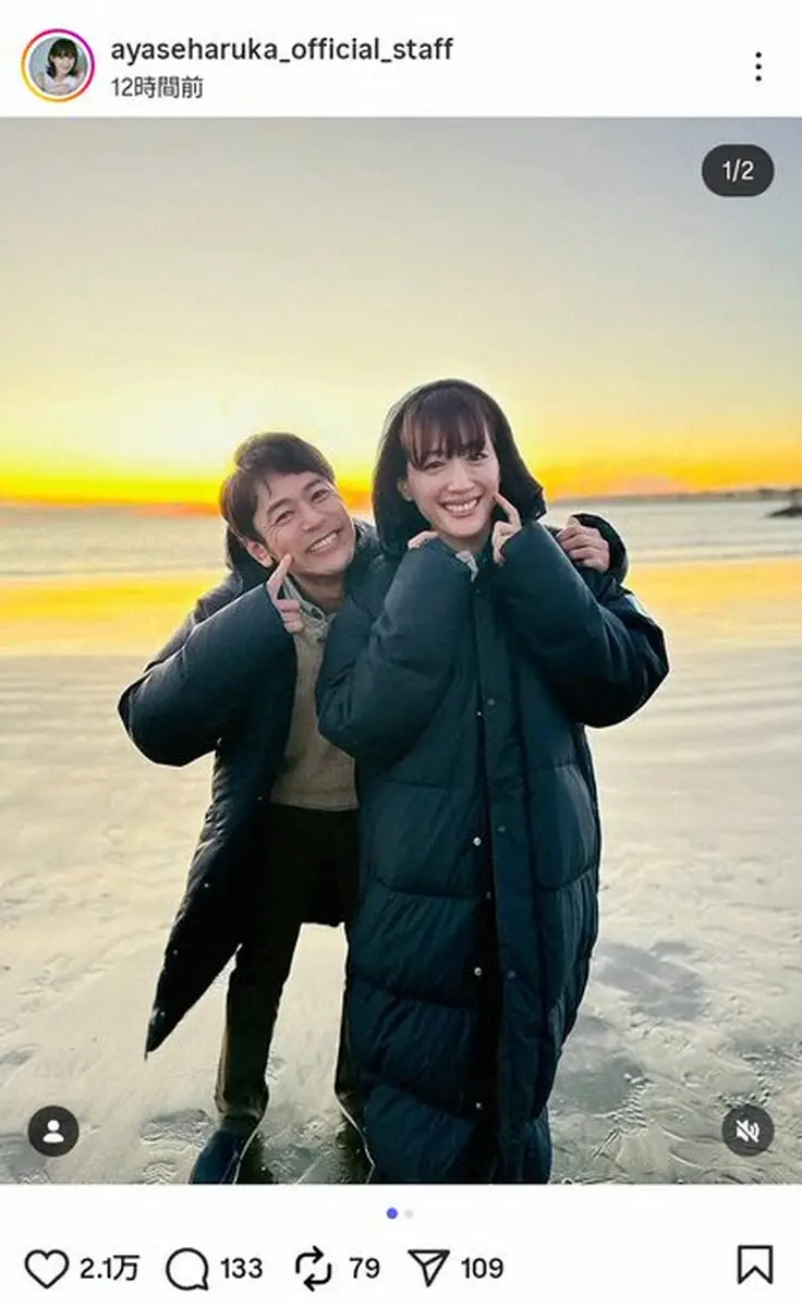 女優の綾瀬はるか(41)のマネジャーのインスタグラムが21日までに更新。共演俳優との2ショットを公開した。
