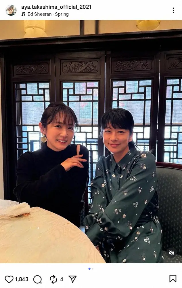 元フジテレビでフリーアナウンサーの高島彩(47)が21日、自身のインスタグラムを更新。同局・生野陽子アナ(41)との写真を披露した。
