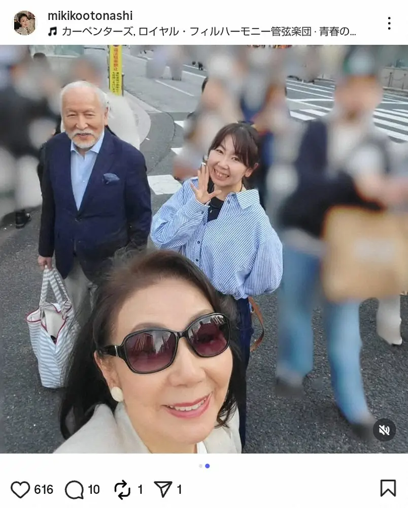 女優の音無美紀子(76)が21日、自身のインスタグラムを更新。外出先での写真を披露した。