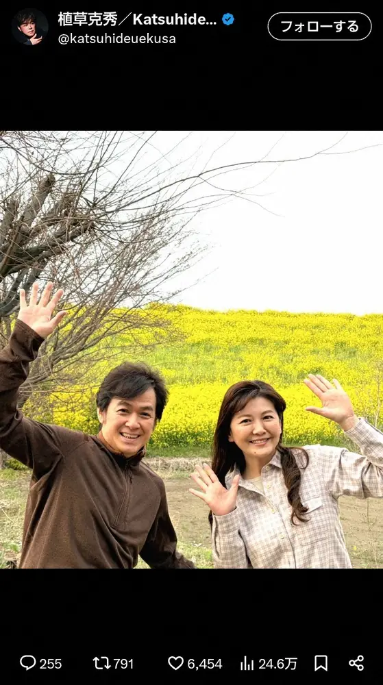 植草の投稿に、フォロワーからは「若々しいお二人のショット、素敵です」「カッちゃんとナンノちゃん 嬉しかった」「お二人笑顔キラキラ 長いご活躍本当にすごいです!!」「いいですね!二人とも若々しいです。かっちゃん、スマートに、なり若返りましたね」「大好きなお二人のツーショット、嬉しいです」といった反響が寄せられている。