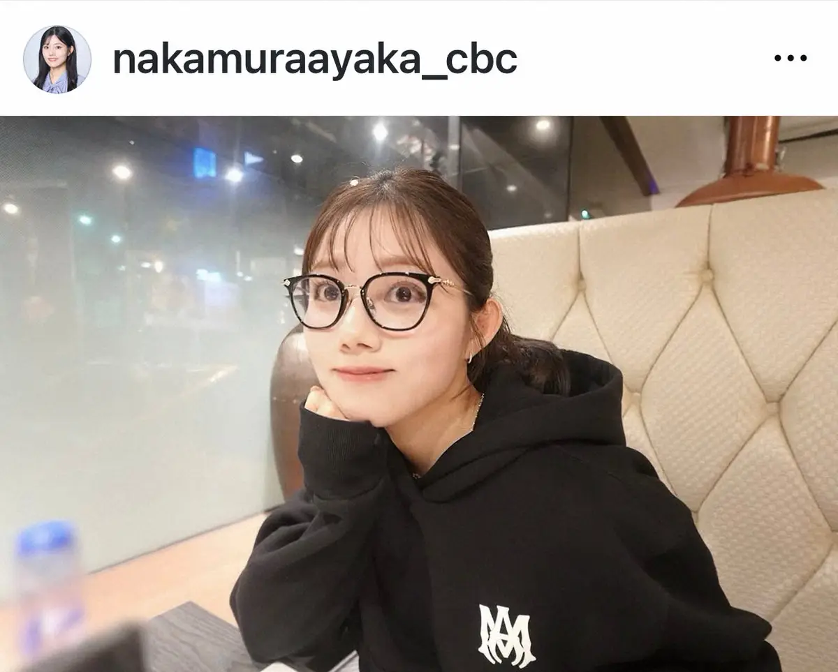 CBCの中村彩賀アナウンサー(25)が22日、自身のインスタグラムを更新。レアなメガネ姿を公開した。