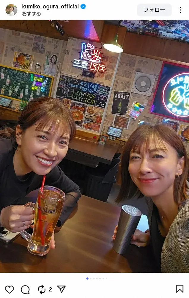 元バドミントン日本代表の小椋久美子さん(42)が22日、自身のインスタグラムを更新。親交のある元プロビーチバレー選手でタレントの浅尾美和(40)と再会したことを伝えた。