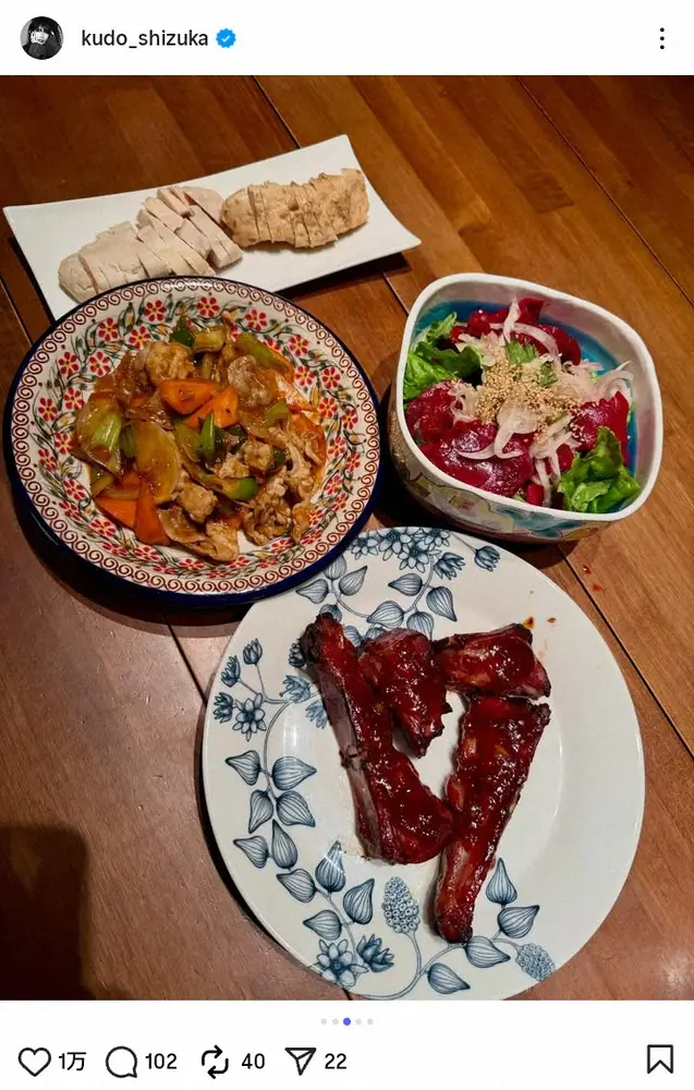 この投稿にフォロワーからは「食べたいなぁ」「幸せ家族の団らんが目に浮かびます」「しーちゃん 愛と野菜たっぷり美味しそう」「お皿も素敵で見ちゃう」「わたしのぶんもお願いします」などの声が集まった。