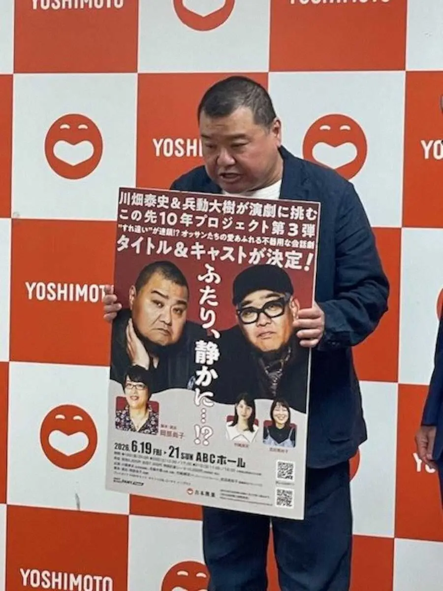 また、継続している「この先10年プロジェクト」の第3弾として、矢野・兵藤の兵動大樹(55)とともに開催する公演「ふたり、静かに…!?」(6月19~21日、ABCホール)も発表。その中で、兵動が大阪マラソン挑戦を続けていることの流れで、川畑は「オレも頑張らんと」と50CCバイクの耐久レース挑戦を表明。ただ、新喜劇GMの間寛平(76)から「もうフルフェイスのヘルメット被ってるの?」と丸い顔をイジられ、「誰が顔、パンパンなんや」と返して爆笑を巻き起こした。