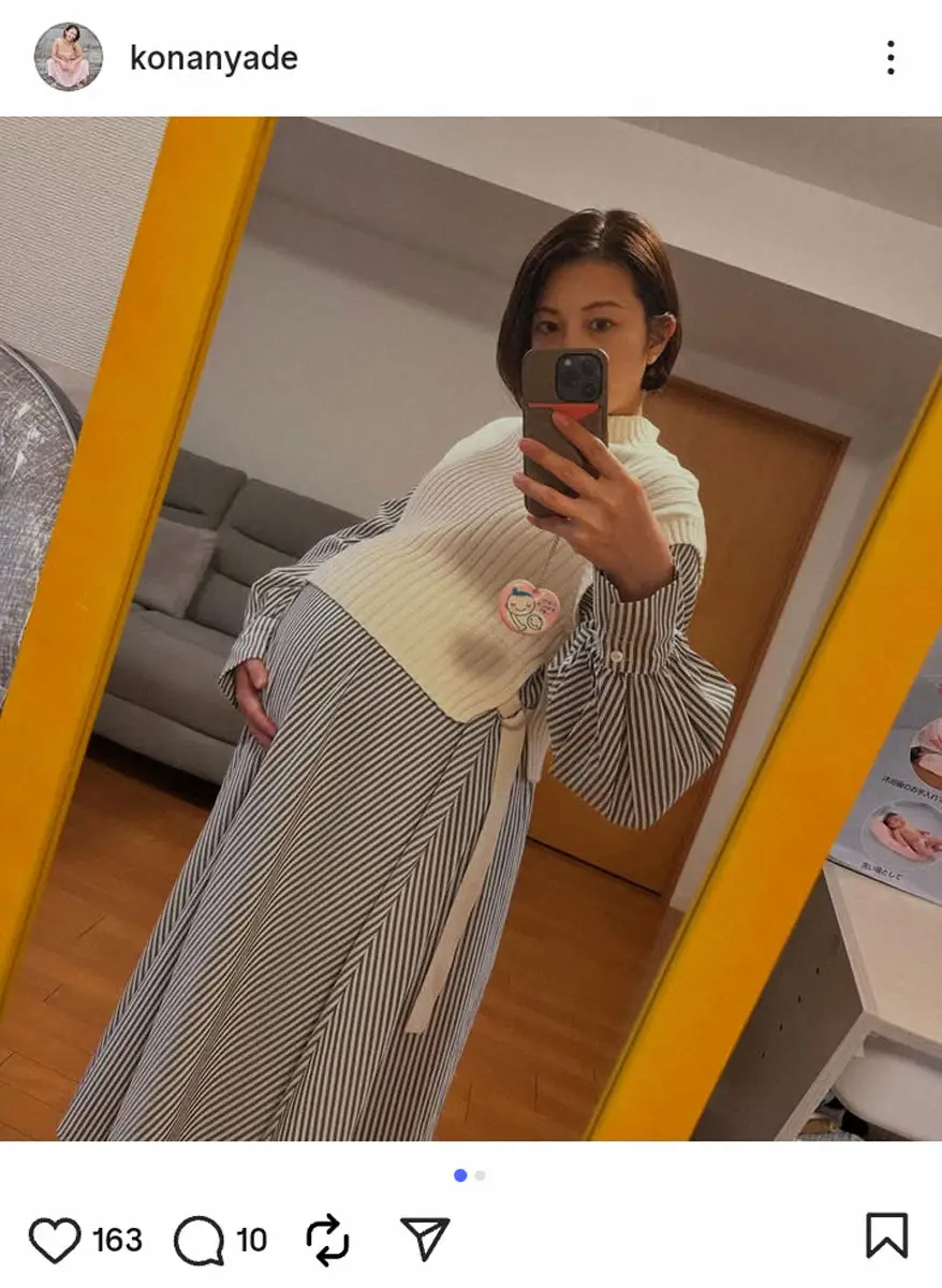 KONANは23年8月に結婚を発表。今年3月に第1子妊娠を発表し、妊娠9カ月のマタニティーフォトも公開していた。