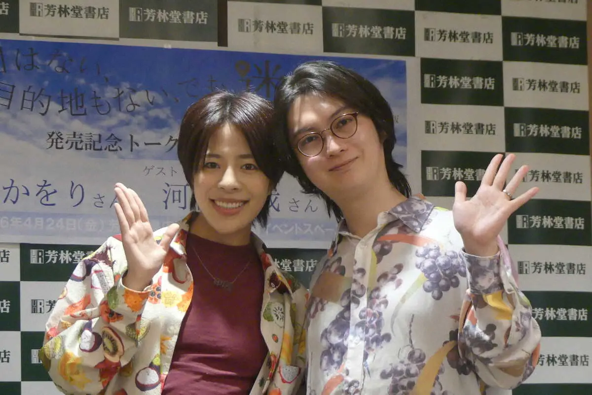 作家でタレントの篠原かをり(31)が24日、都内で初エッセー集「地図はない、目的地もない、でも迷子ではない」(NHK出版)の発売記念イベントを行った。トークイベントには、夫で頭脳集団「QuizKnock」の河村拓哉(32)も参加。イベント前には、夫婦では初となる囲み取材に臨んだ。