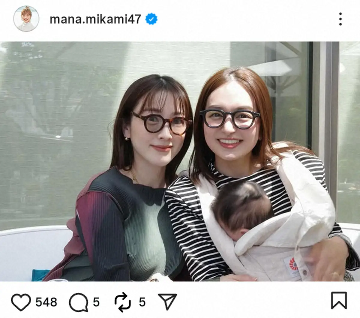 第1子を妊娠しているフジテレビの三上真奈アナウンサー(37)が24日、自身のインスタグラムを更新。元日本テレビでフリーアナウンサーの後藤晴菜(36)との眼鏡オフショットを公開した。