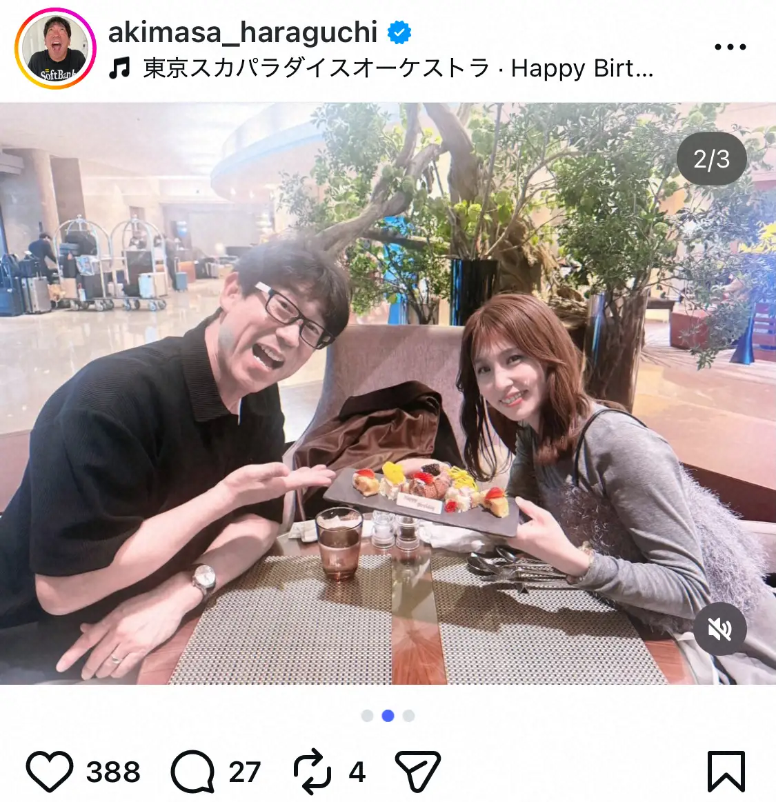 原口あきまさ「嫁ちゃん誕生日」お祝い2S 元グラドル年下妻の姿に「綺麗な奥様」「可愛い」