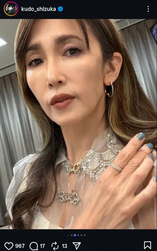 工藤静香公式インスタグラム(@kudo_shizuka)から 工藤静香 白いドレス姿&ジュエリー披露に「素敵な衣装 綺麗~」「とて… ギャラリーで見る この記事のフォト 2026年04月26日の画像一覧 もっと見る 2026年04月26日の画像をもっと見る