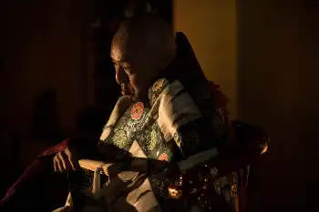 長政の願いに耳を貸さず、義景は女と子どもを盾に。覚恕は「浅井殿、人聞きの悪いことを申されるな。あの者らは自ら庇護を求めてここにおるのです」と長政を制した。