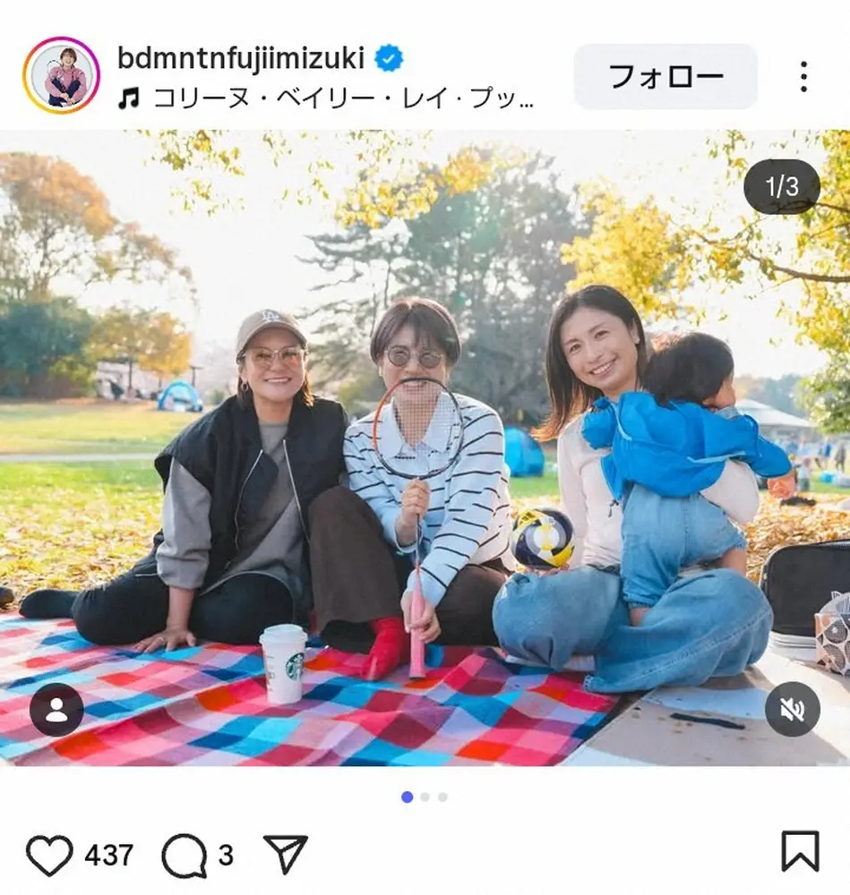 バドミントンで12年ロンドン五輪女子ダブルス銀メダリストの藤井瑞希さん(37)が27日までに自身のインスタグラムを更新。女子ゴルフ界のレジェンド、元なでしこJAPANメンバーとのピクニックショットを披露した。